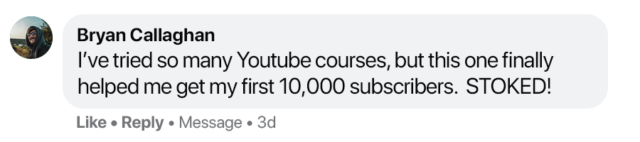 "I’ve taken tons of YouTube courses before, but this is the first one that actually made everything click. It's been life changing for me and my channel. click
